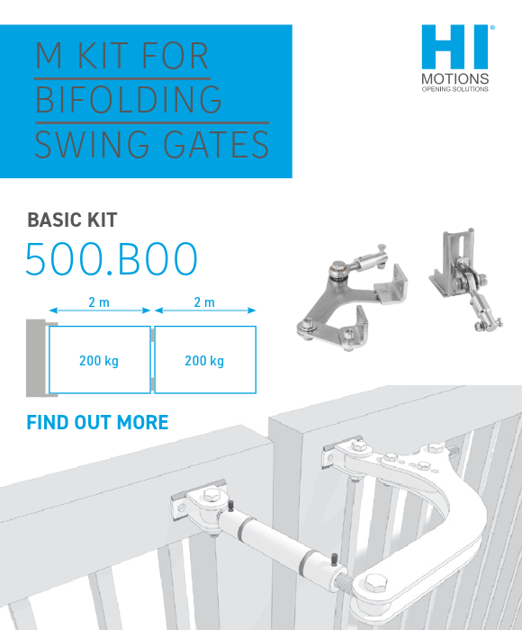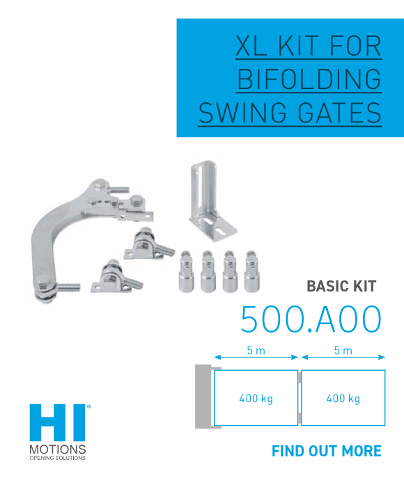 Introducing the brand-new Hi-Motions Bi-Folding Swing Gate Kits Hi-Motions has developed a new range of accessories that allow for the