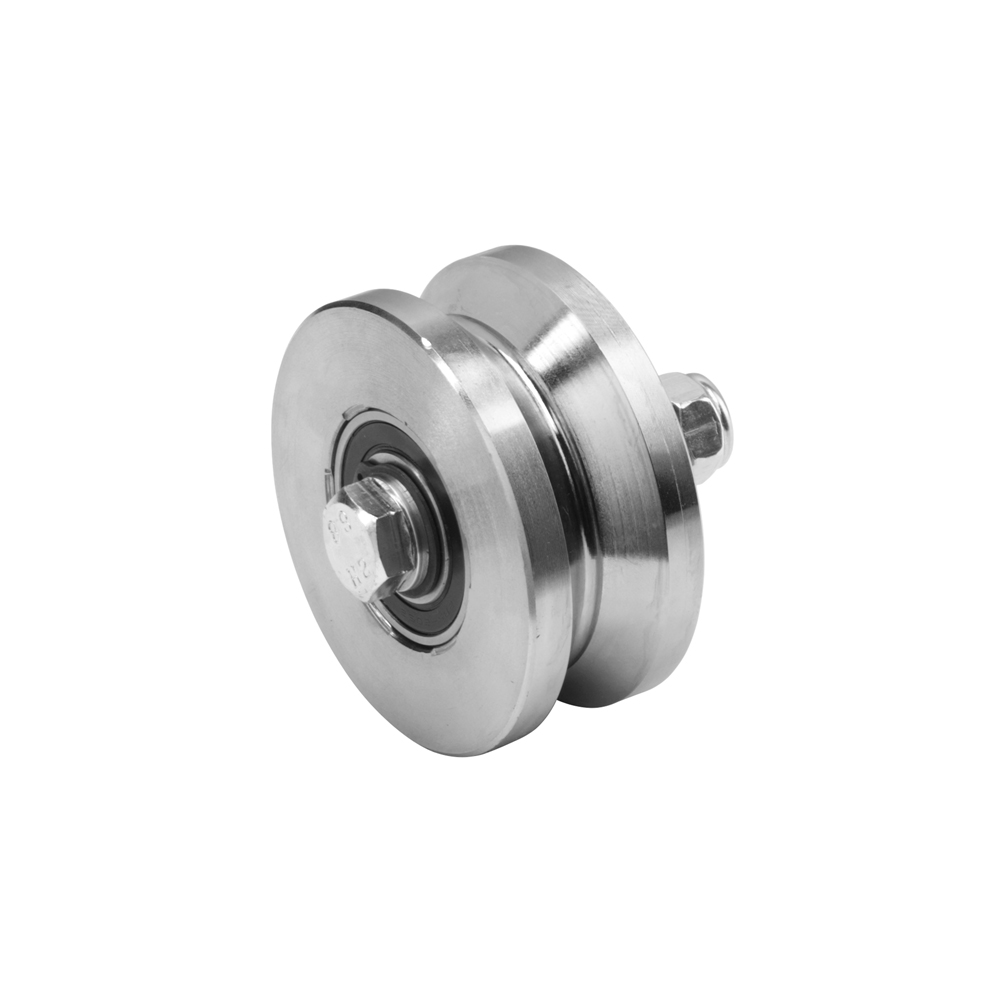 Steel overhead gate wheels, with half-round groove, 1 bearing.