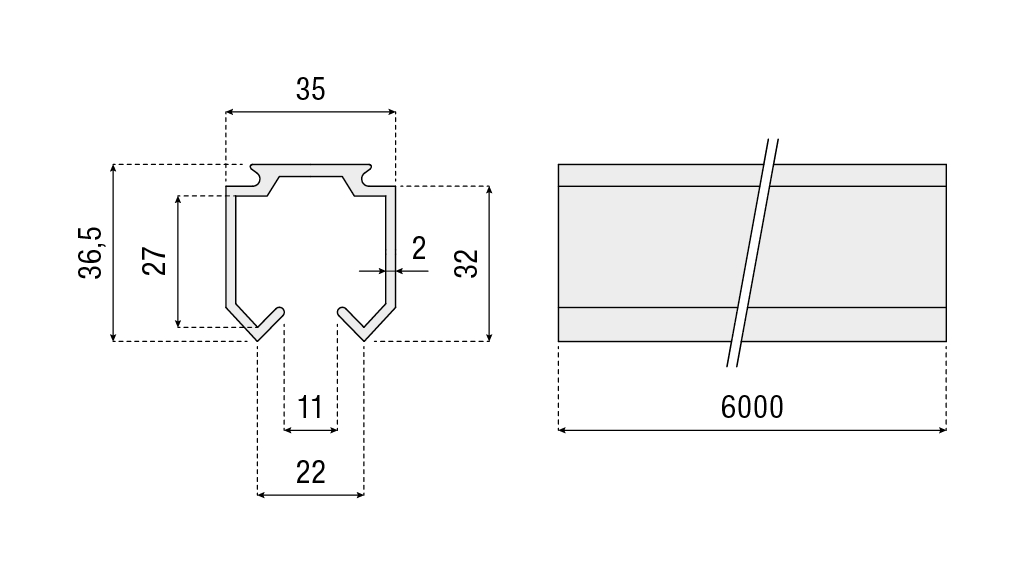 Aluminium track for 24mm Ø rollers with Nylon wheels (601-609/24N).