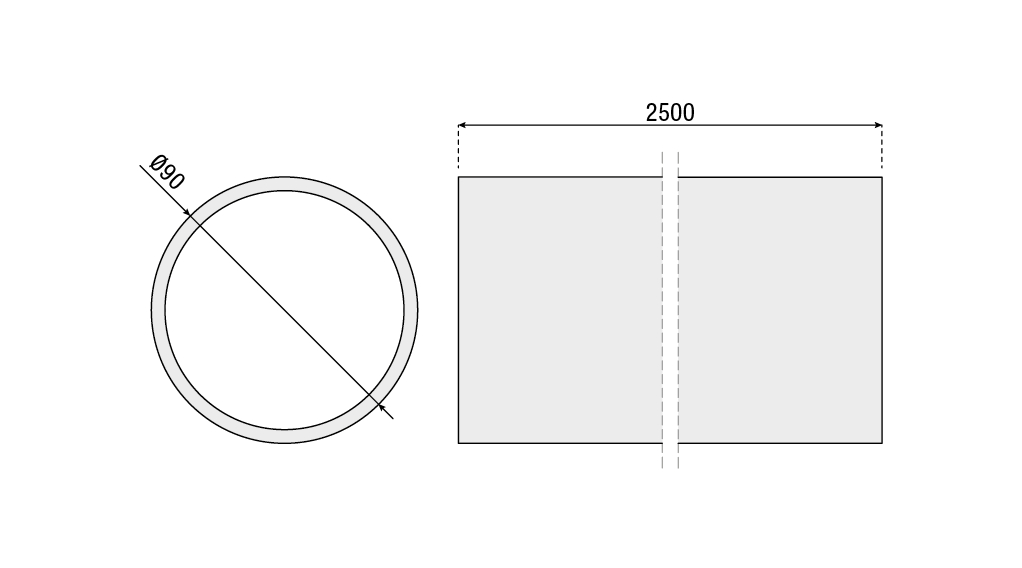 Aluminium bar with diameter of 90mm.