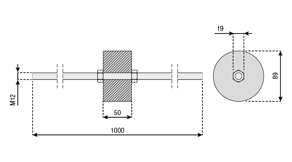 Weight 3.0 kg with threaded bar (cylindrical shape, 50 mm thick).