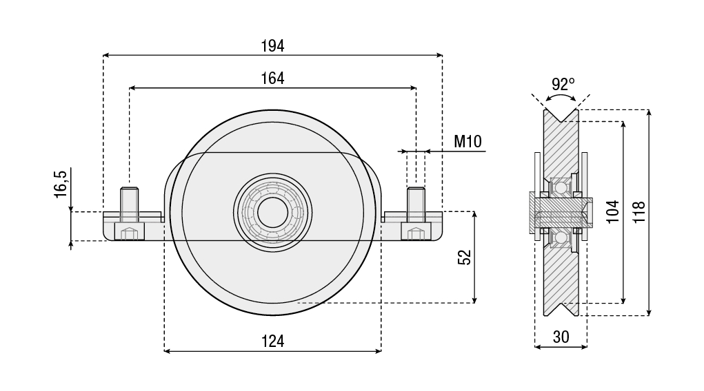 Galvanized wheel with special internal support, V groove, 1 bearing.