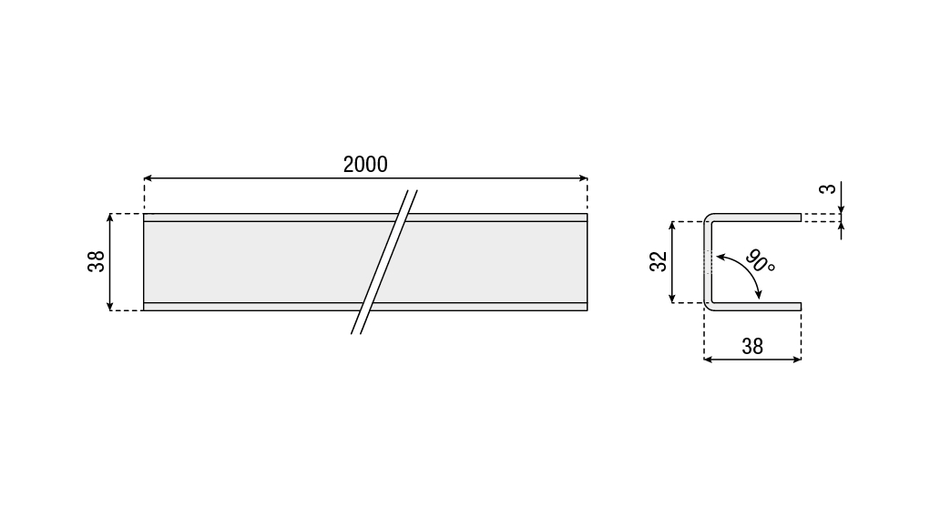 Galvanized track 38x38x3 for ø 30 mm rollers.