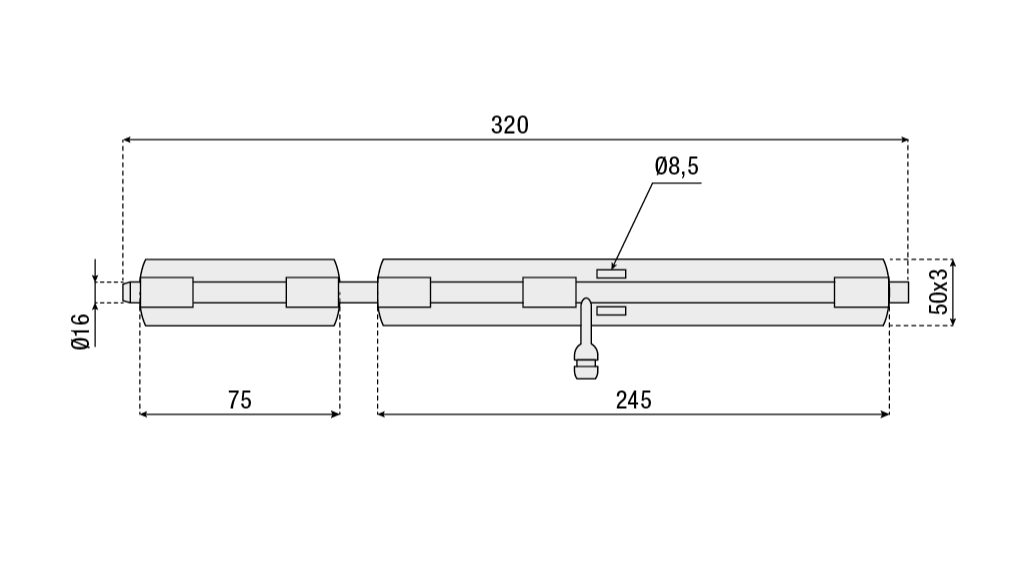 Stainless steel horizontal bolt with padlock holder and fixing holes